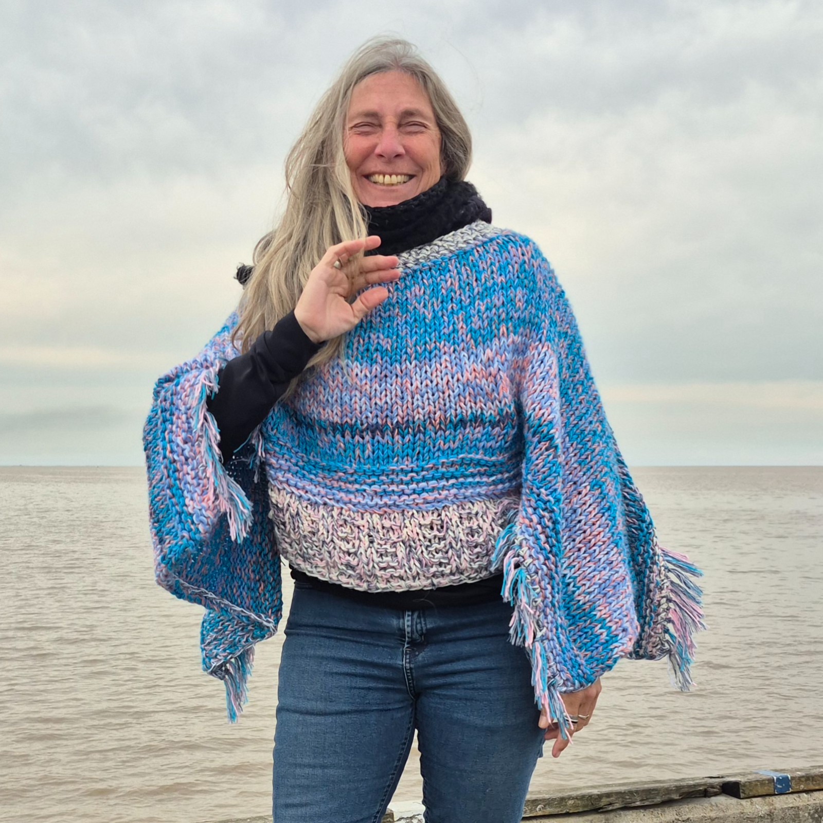 Es un saco poncho, talle único