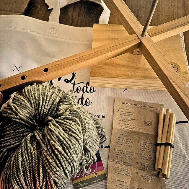 El devanador manual de madera para madejas de lana e hilo de la marca Todo Tejido es una herramienta esencial para los amantes del tejido.