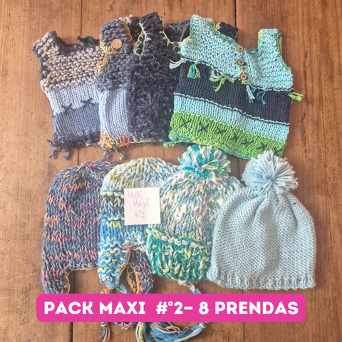 Este pack incluye prendas tejidas a mano, realizadas en algodón o lana hipoalergénica