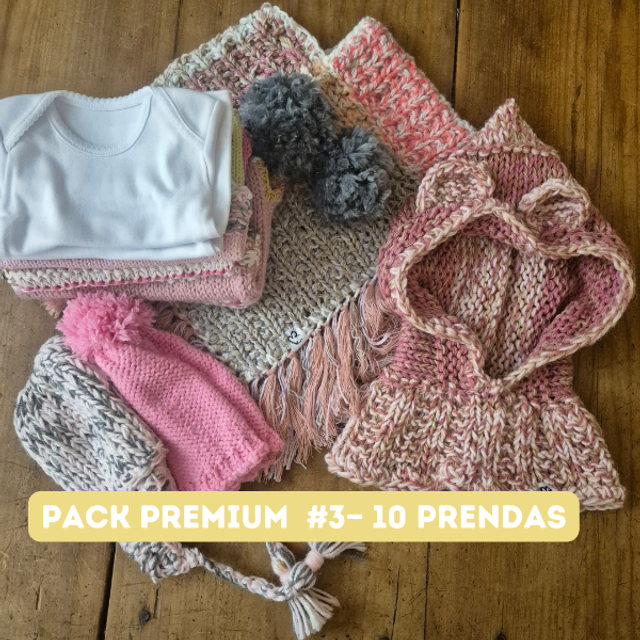 Este pack incluye prendas tejidas a mano, realizadas en algodón o lana hipoalergénica
