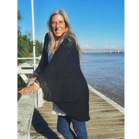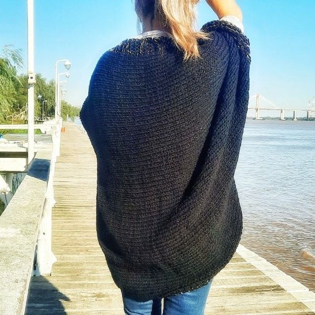 Saco tipo poncho, tejido en lana, de diseño simple y atemporal.