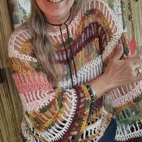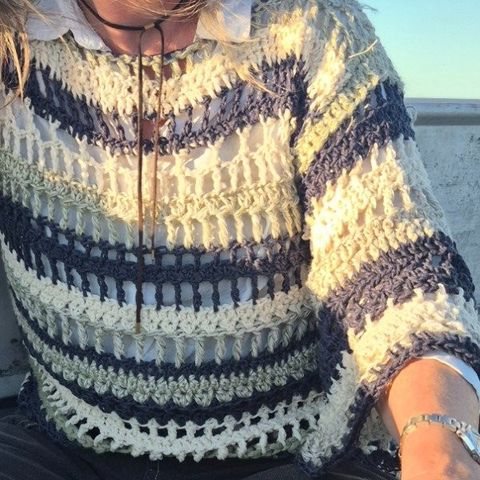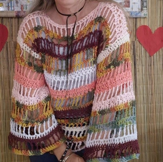 Sweater Catalina de algodón tejido a mano. Cuello bote, mangas amplias y calce cómodo. Diseño artesanal, talle único. Todo Tejido. Ver más detalles